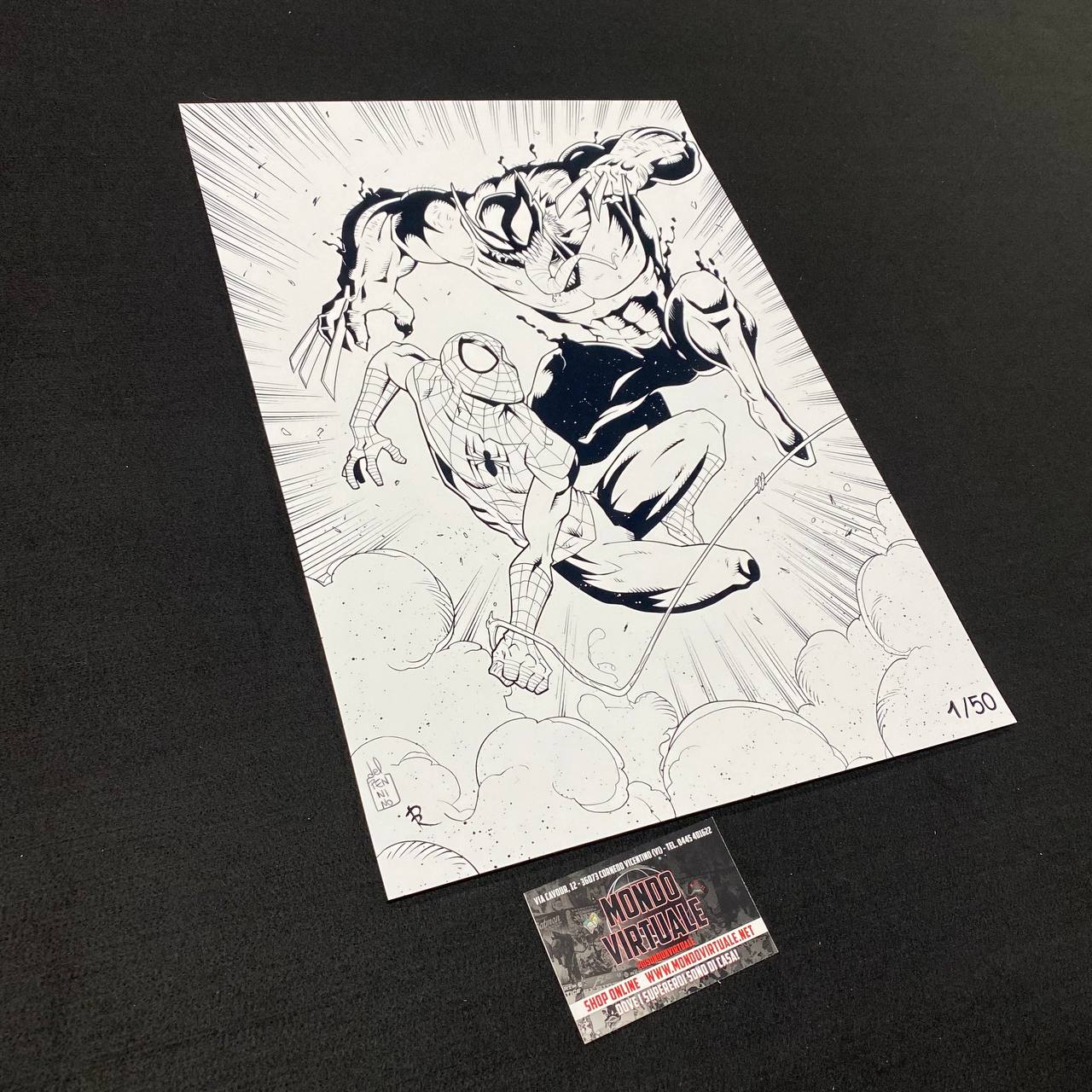 Art Print numerata a 50 pezzi al mondo di Spider-Man e Wolverine Venomizzato.