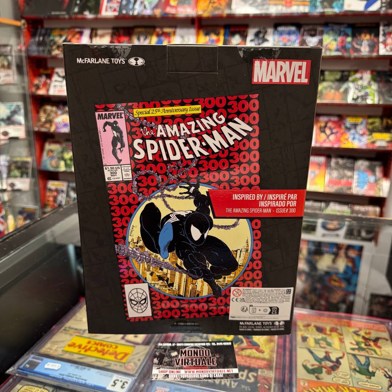 Spider-Man con il costume nero direttamente da Amazing Spider-Man 300 da 30cm, in più anche la replica del comics